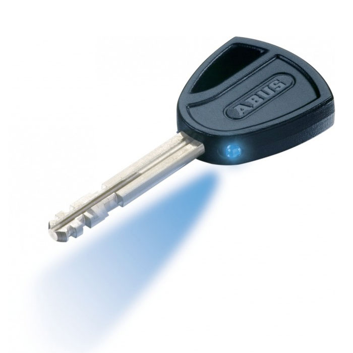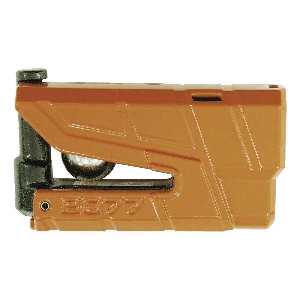 Κλειδαριά δισκοφρένου 8077 DETECTO από την ABUS. Το μπουλόνι, η κλειδαριά το σώμα καθώς και ο μηχανισμού ασφάλισης είναι κατασκευασμένα από ειδικό σκληρό χάλυβα. Λειτουργία συναγερμού στην βάση του συστήματος ανίχνευσης ABUS 3D, που σημαίνει, ότι κάθε κίνηση ανιχνεύεται. Συναγερμός τουλάχιστον 100 dB για 15 δευτερόλεπτα (ενεργοποιείται αυτόματα και πάλι). Το πολύχρωμο LED και διαφορετικά ηχητικά σήματα ενημερώνουν για την μπαταρία, την ενεργοποίηση και την κατάσταση συναγερμού. Παρέχονται δύο κλειδιά το ενα με φως LED. Επίσης περιέχεται ABUS Code Card για αντικατάσταση κλειδιών. Δύο τυποποιημένες μπαταρίες ΑΑΑ για τη λειτουργία του συναγερμού (περιλαμβάνονται).Προστατευτική θήκη για εύκολη και ασφαλή μεταφορά σε ειδικό χώρο, π.χ. κάτω από το κάθισμα.