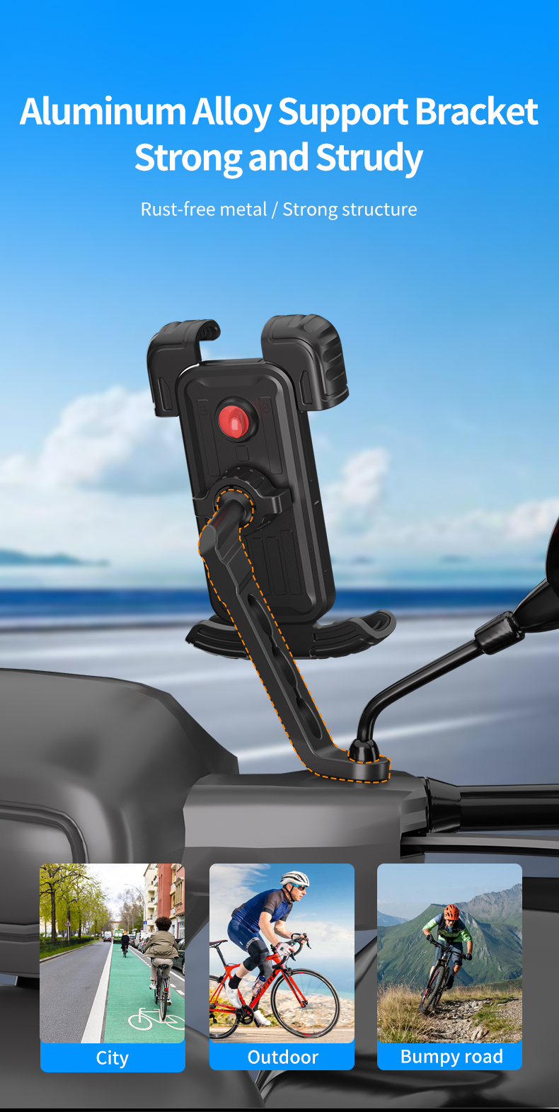 Η σειρά βάσης τηλεφώνου QPH της LanParte με ελατήριο προσφέρει μια ευέλικτη βάση τηλεφώνου προσαρμοσμένη για μοτοσικλέτες, ηλεκτρικά ποδήλατα και ποδήλατα. Με τον κατοχυρωμένο με δίπλωμα ευρεσιτεχνίας μηχανισμό γρήγορης απελευθέρωσης, αυτή η βάση έχει έναν στιβαρό μεταλλικό πυρήνα που περιβάλλεται από ανθεκτικό πλαστικό, εξασφαλίζοντας ασφαλή λειτουργία με το ένα χέρι. Ο διακόπτης κλειδώματος ασφαλείας του αποτρέπει τις τυχαίες πτώσεις, καθιστώντας το συμβατό με smartphone που κυμαίνονται από 4,7 έως 6,8 ίντσες.