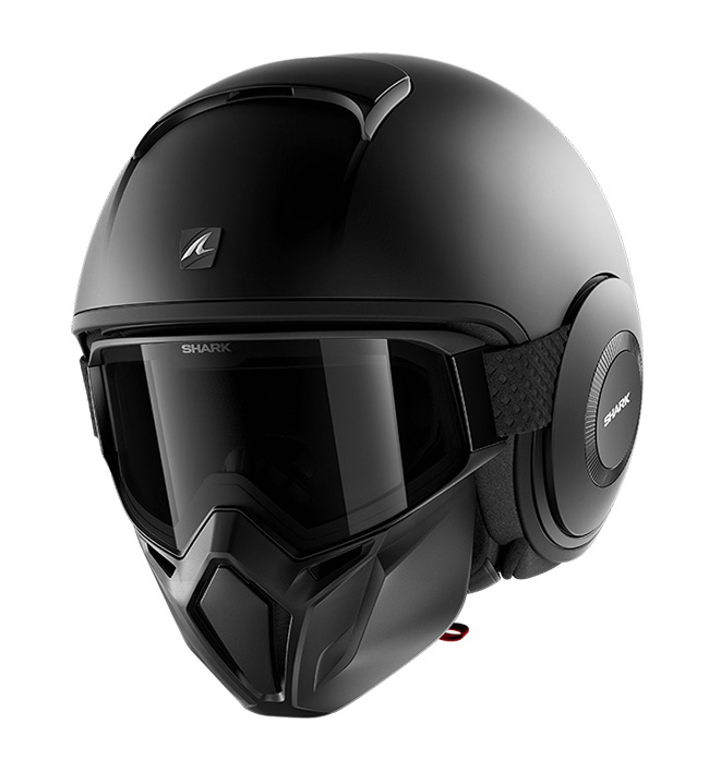 Κράνος Street-Drak από την SHARK. Ένα συμπαγές κράνος με ισχυρή αισθητική νέας φιλοσοφίας που συνδυάζει το μυστήριο με το retro. Ιδανικό για αστική χρήση, κυρίως για αναβάτες σκούτερ ή γυμνής μοτοσυκλέτας. Εσωτερική επένδυση "Aegis*" από υποαλεργικό με αντιβακτηριδιακές ιδιότητες υλικό. Kανάλια ροής του αέρα παρέχουν στον αναβάτη ιδανικό κλιματισμό και άνεση ακόμα και σε ζεστές συνθήκες. Η εξαιρετικά λέπτή μάσκα καθώς και η προέκτασή τηςαφαιρούνται εύκολα δίνοντας σας την δυνατότητα να έχετε 2 κράνη σε 1, Full Face ή Jet. Ένα μικρού όγκου αστικό κράνος που συνδυάζει εξαιρετική ασφάλεια, μικρό μέγεθος και εκκεντρική εμφάνιση εμπνευσμένη από τα video games!