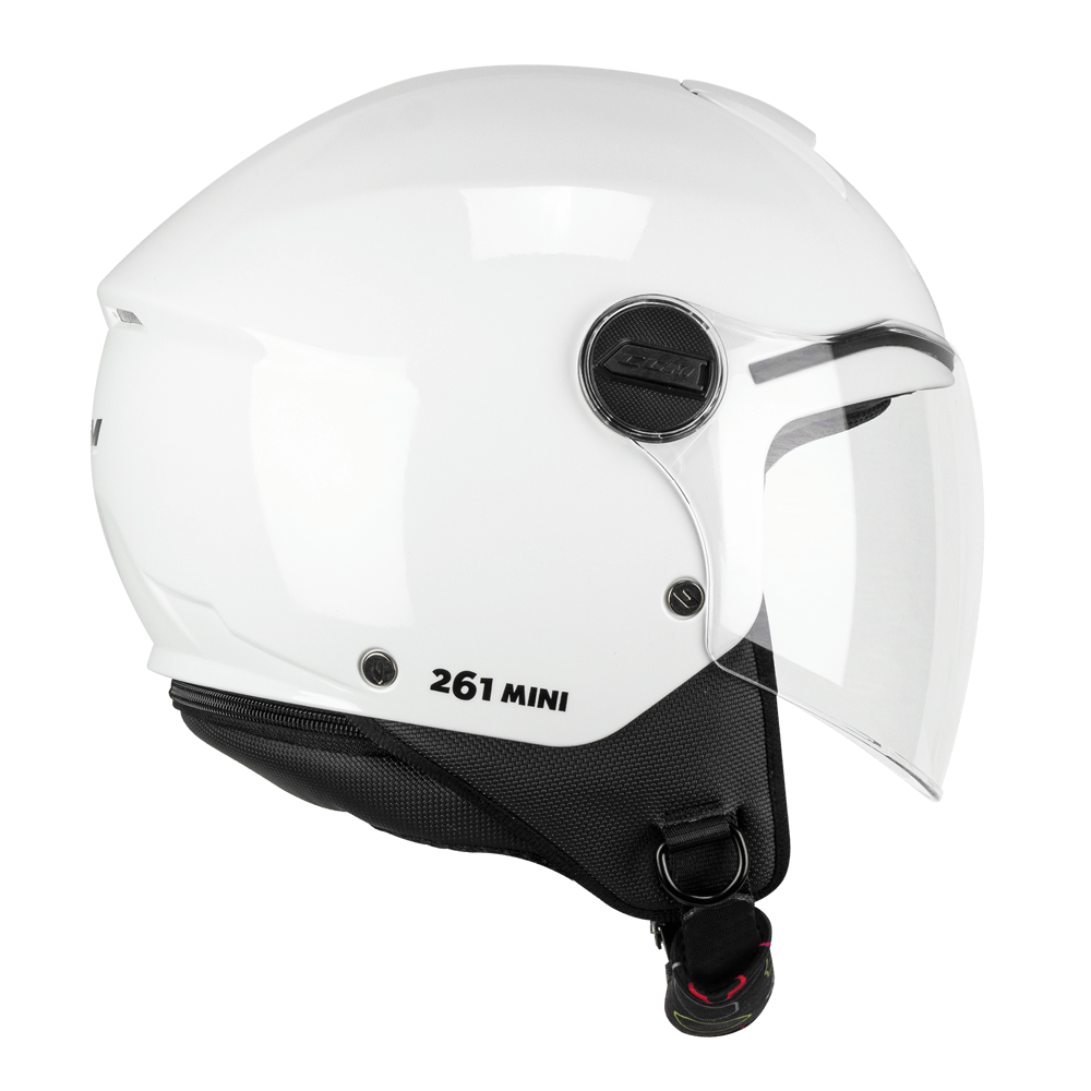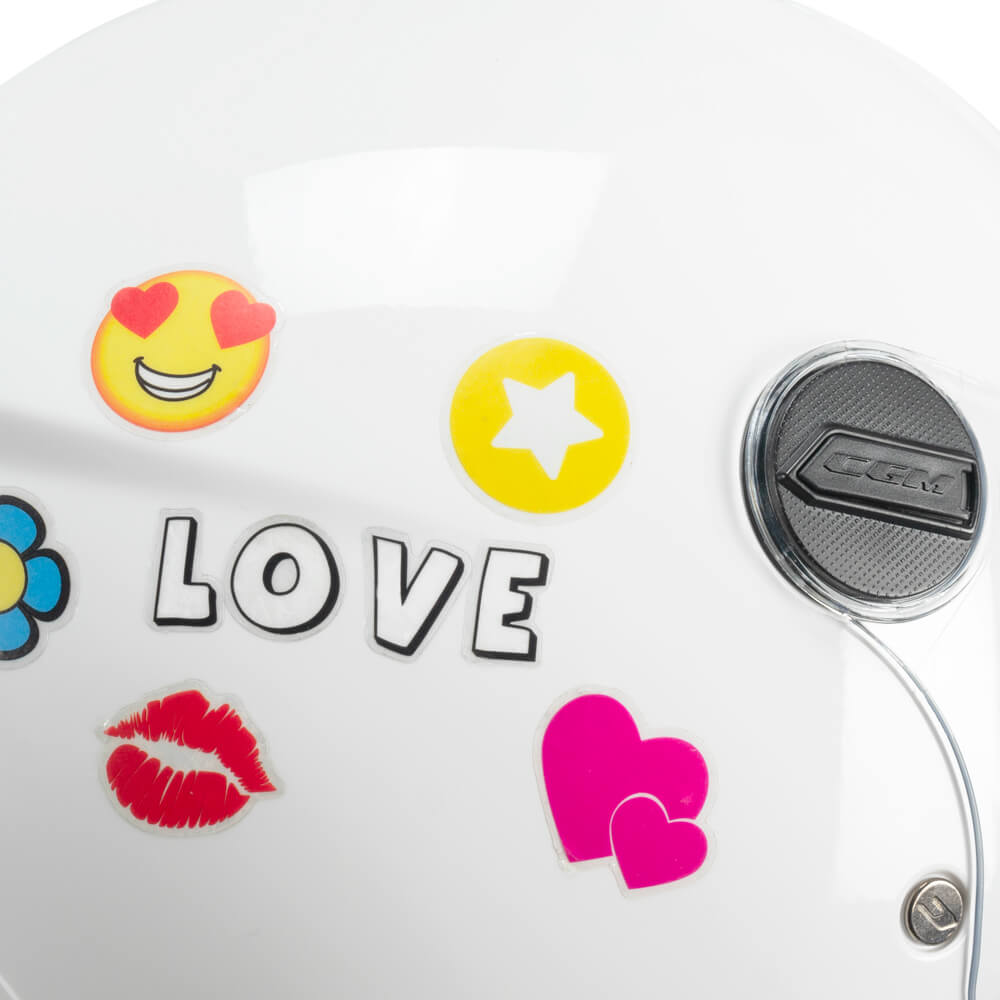 Παιδικό τζετ κράνος της Ιταλικής CGM. Είναι κατασκευασμένο από ενισχυμένο θερμοπλαστικό υλικό υψηλής αντοχής και πληροί τις προδιαγραφές ECE R 22.06 της Ευρωπαϊκής Ένωσης. Είναι εξαιρετικά ελαφρύ και άνετο και διαθέτει αφαιρούμενες πλενομενες επενδύσεις. Έχει σύστημα αερισμού AIR STREAM SYSTEM και διαθέτει μακριά αντιχαρακτική ζελατίνα η οποία εξασφαλίζει καλύτερη προστασία από τον αέρα, τα έντομα κλπ. Συμπεριλαμβάνει ΚΙΤ με αυτοκόλλητα.
