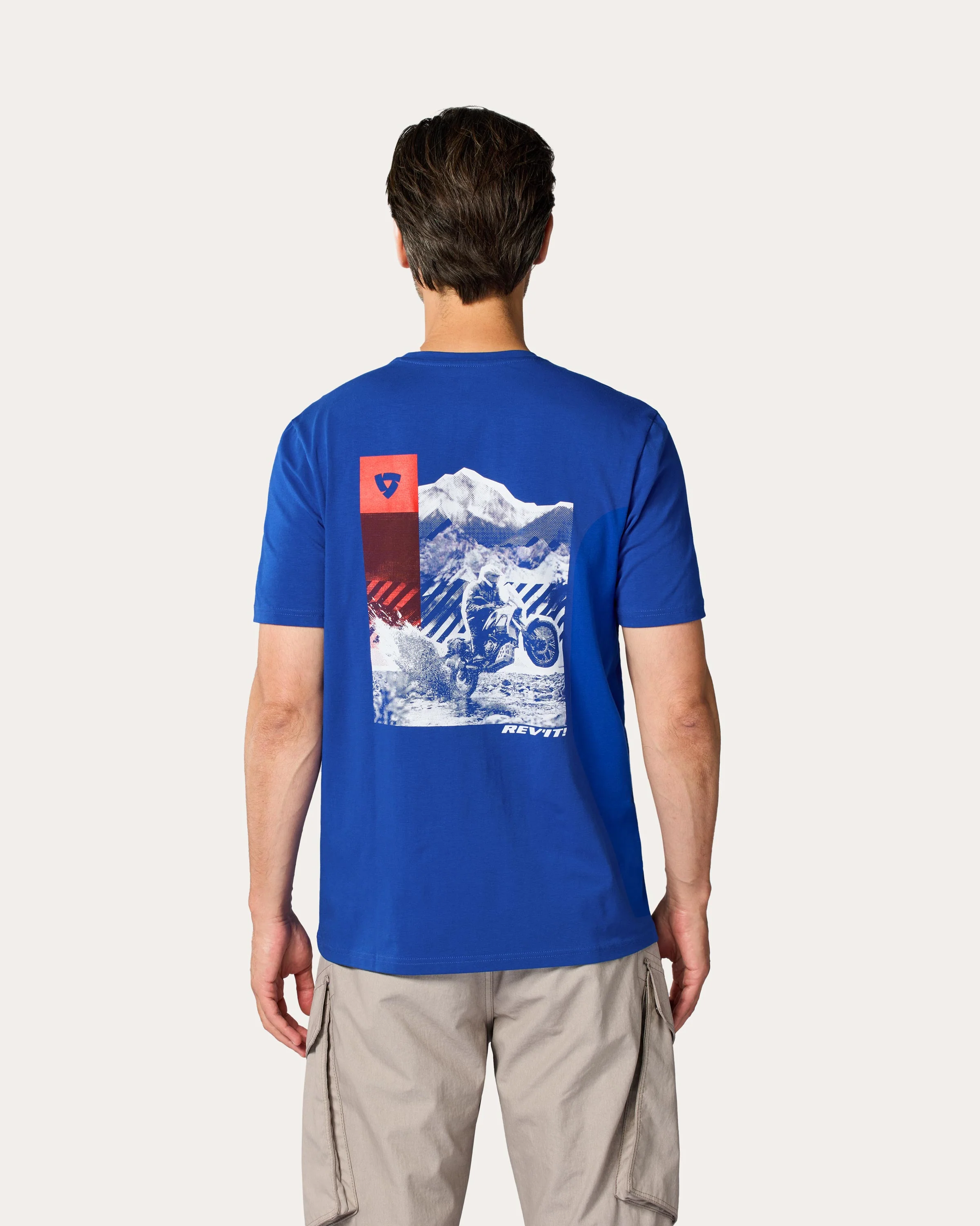 Ενώ το μπροστινό μέρος παραμένει κομψό και minimal με ένα μικρό λογότυπο REV'IT!, η πλάτη αποκαλύπτει ένα μεγάλο, καλλιτεχνικό γραφικό που απεικονίζει μια μοτοσυκλέτα adventure. Είναι ο τρόπος σου να δείξεις την αγάπη σου για το riding industry, ακόμα και όταν δεν φοράς τον πλήρη εξοπλισμό σου.