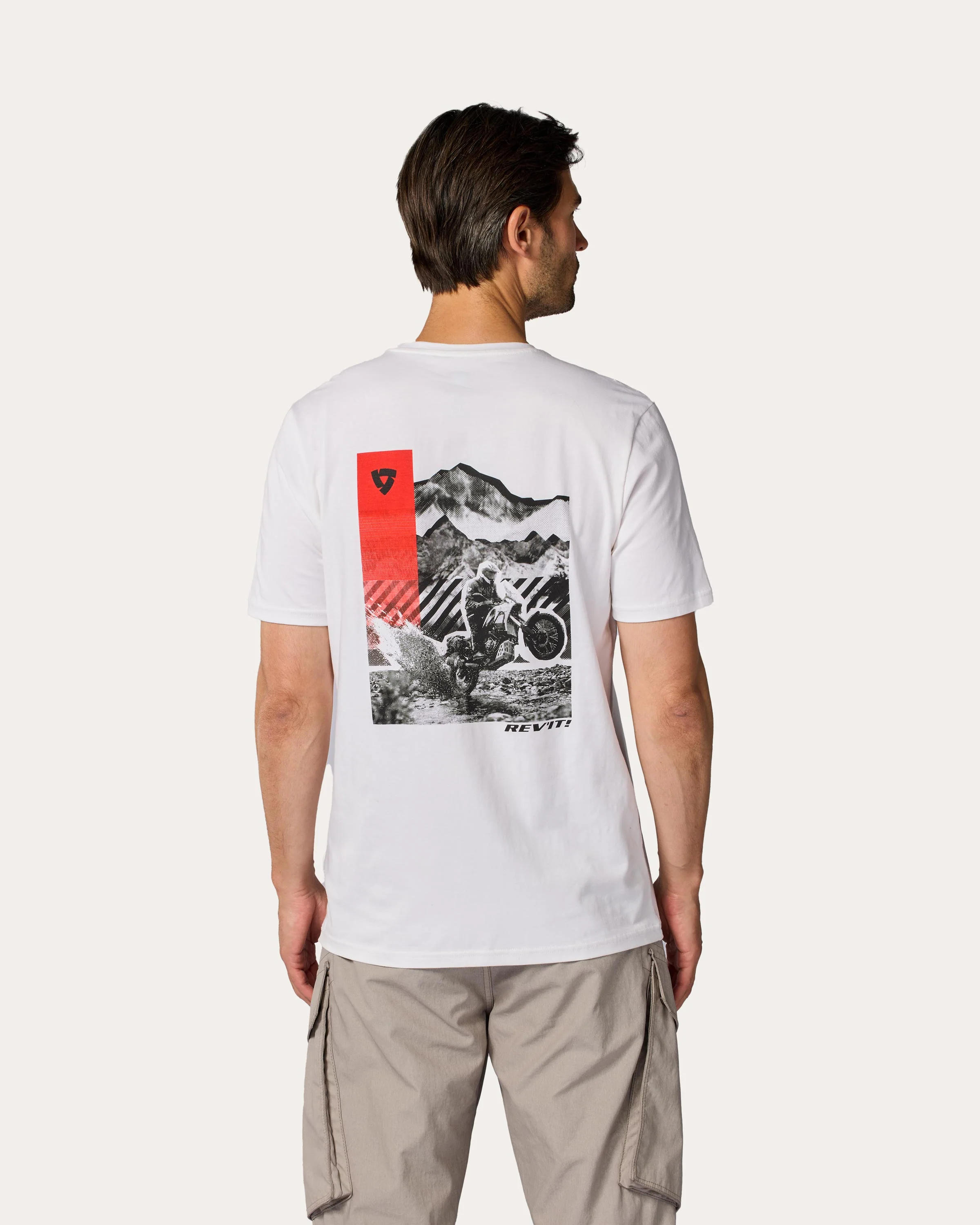 Ενώ το μπροστινό μέρος παραμένει κομψό και minimal με ένα μικρό λογότυπο REV'IT!, η πλάτη αποκαλύπτει ένα μεγάλο, καλλιτεχνικό γραφικό που απεικονίζει μια μοτοσυκλέτα adventure. Είναι ο τρόπος σου να δείξεις την αγάπη σου για το riding industry, ακόμα και όταν δεν φοράς τον πλήρη εξοπλισμό σου.