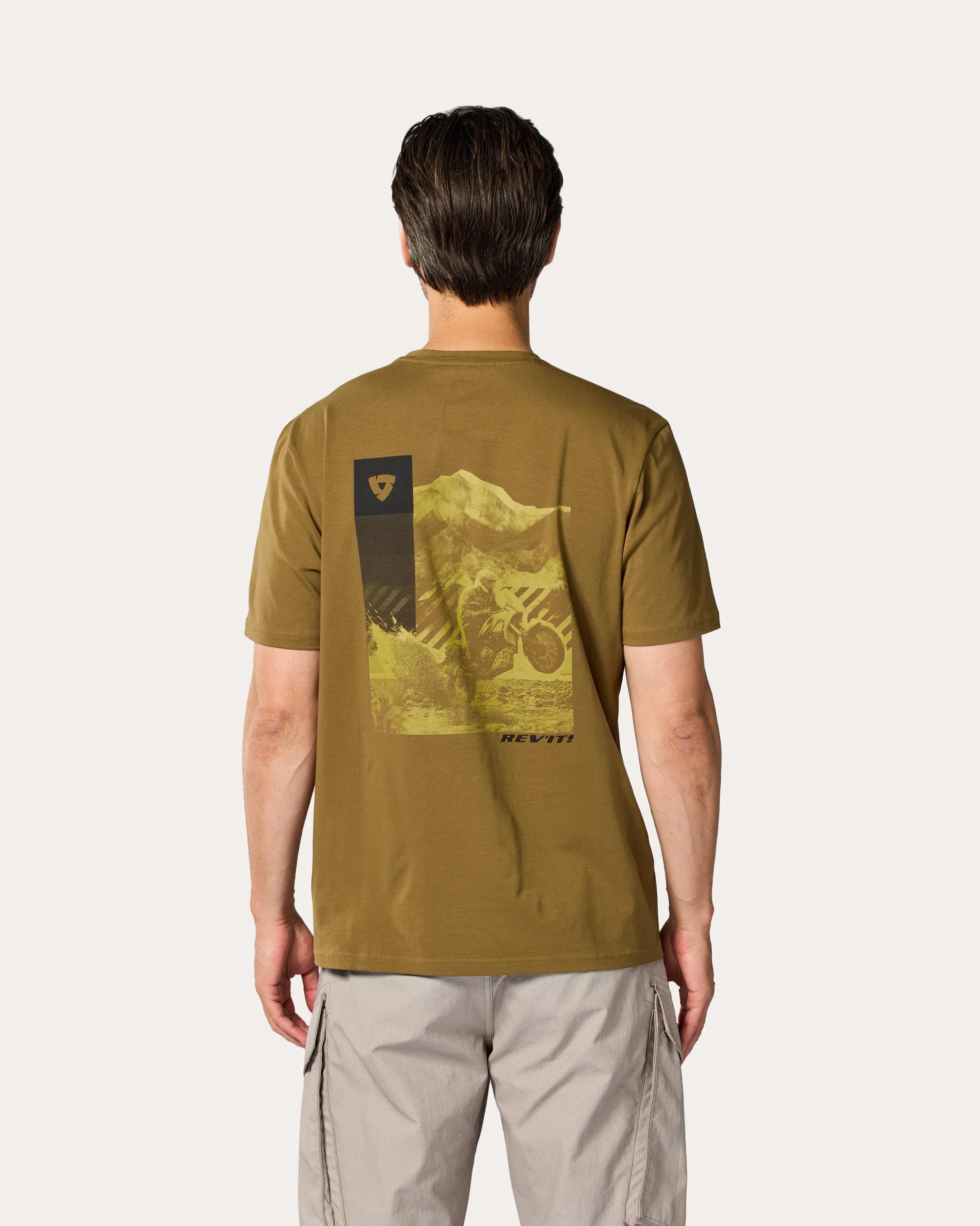 Ενώ το μπροστινό μέρος παραμένει κομψό και minimal με ένα μικρό λογότυπο REV'IT!, η πλάτη αποκαλύπτει ένα μεγάλο, καλλιτεχνικό γραφικό που απεικονίζει μια μοτοσυκλέτα adventure. Είναι ο τρόπος σου να δείξεις την αγάπη σου για το riding industry, ακόμα και όταν δεν φοράς τον πλήρη εξοπλισμό σου.