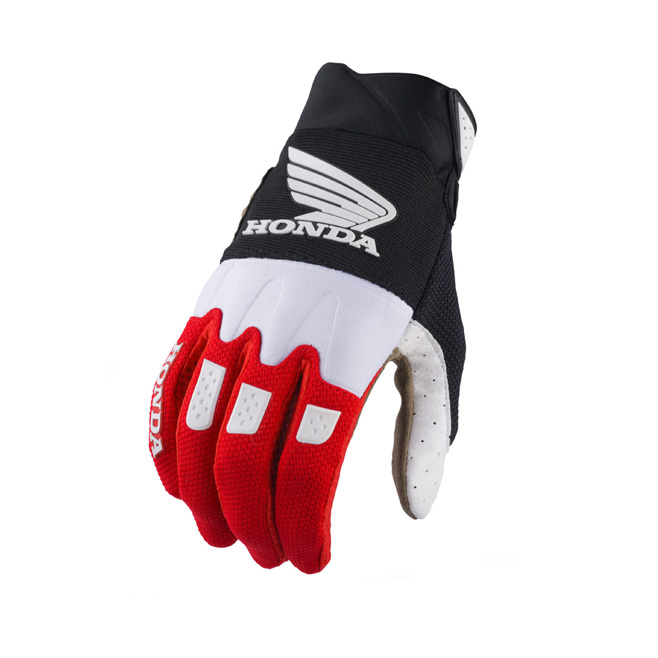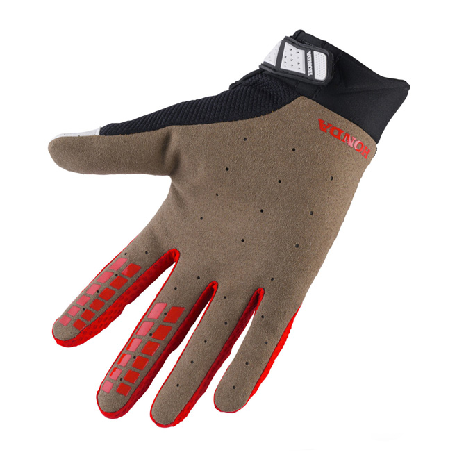 Σχεδιασμένα για να εξοπλίζουν τους αναβάτες μοτοκρός, τα γάντια Honda 2025 διαθέτουν το εμβληματικό επίσημο σχέδιο του κατασκευαστή με σπορ χρώματα και ένα χαρακτηριστικό φτερό. Ευέλικτα, αεριζόμενα και ενισχυμένα για να εγγυώνται βέλτιστη αντοχή και άνεση, η χρήση τους προορίζεται ωστόσο για χρήση εκτός δρόμου. Δεν είναι εγκεκριμένα για χρήση στο δρόμο.