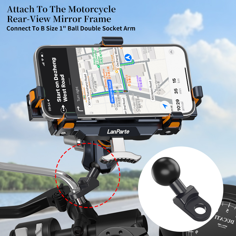 Αντάπτορας στήριξης  LanParte, ειδικά σχεδιασμένο για στερέωση στο καθρέπτη μοτοσικλετών. ...more