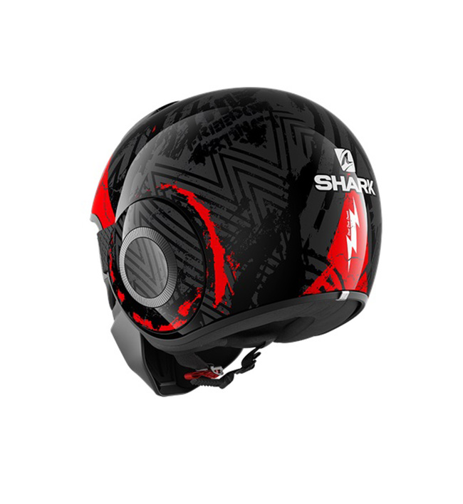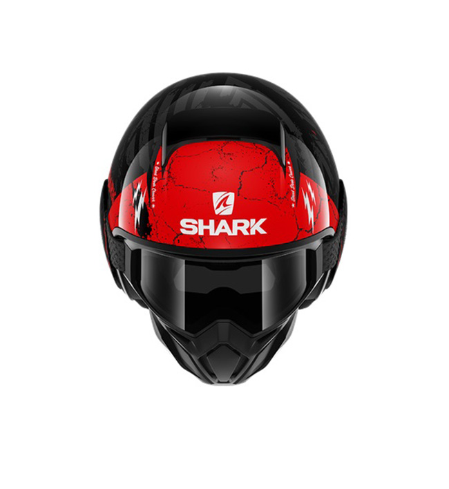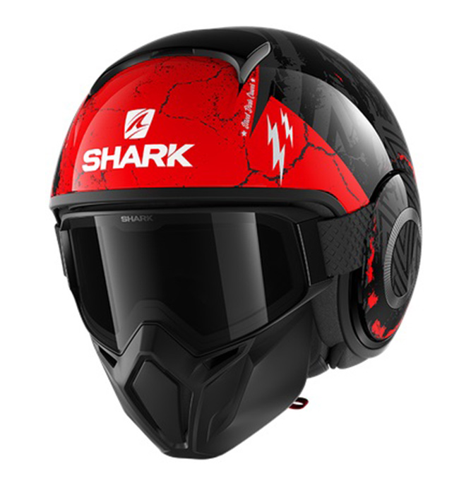 Κράνος Street-Drak από την SHARK. Ένα συμπαγές κράνος με ισχυρή αισθητική νέας φιλοσοφίας που συνδυάζει το μυστήριο με το retro. Ιδανικό για αστική χρήση, κυρίως για αναβάτες σκούτερ ή γυμνής μοτοσυκλέτας. Εσωτερική επένδυση "Aegis*" από υποαλεργικό με αντιβακτηριδιακές ιδιότητες υλικό. Kανάλια ροής του αέρα παρέχουν στον αναβάτη ιδανικό κλιματισμό και άνεση ακόμα και σε ζεστές συνθήκες. Η εξαιρετικά λέπτή μάσκα καθώς και η προέκτασή τηςαφαιρούνται εύκολα δίνοντας σας την δυνατότητα να έχετε 2 κράνη σε 1, Full Face ή Jet. Ένα μικρού όγκου αστικό κράνος που συνδυάζει εξαιρετική ασφάλεια, μικρό μέγεθος και εκκεντρική εμφάνιση εμπνευσμένη από τα video games!