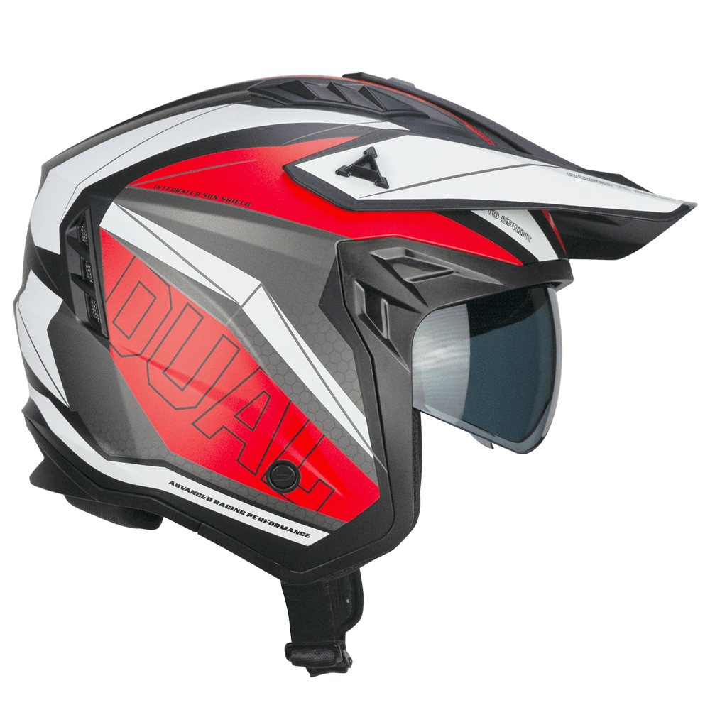 Κράνος τύπου τζετ της Ιταλικής CGM με προσθαφαιρούμενο γείσο και φιμέ ζελατίνα για προστασία από τον ήλιο. Είναι κατασκευασμένο από HPT θερμοπλαστικό υψηλής αντοχής (High Performance Terpolymer) ώστε να είναι εξαιρετικά ανθεκτικό και έχει αφαιρούμενες, πλενόμενες επενδύσεις.