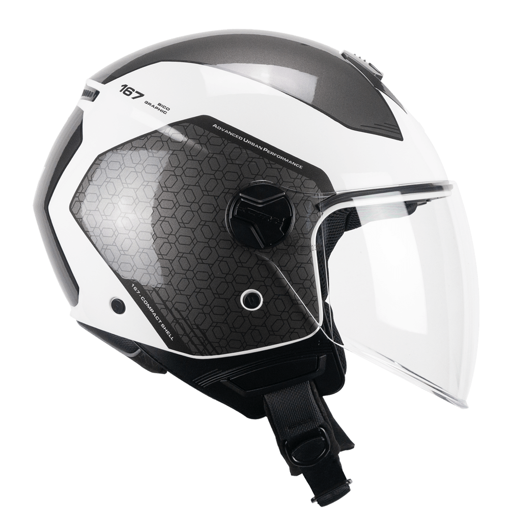 Κράνος τύπου τζετ της Ιταλικής CGM. Είναι κατασκευασμένο με υψηλής τεχνολογίας υλικά που το καθιστούν εξαιρετικά ελαφρύ και ανθεκτικό. Σχεδιασμένο σε τρία μεγέθη κελύφους ώστε να μας εξασφαλίζει την καλύτερη δυνατή εφαρμογή και άνεση και είναι εξοπλισμένο με σύστημα αερισμού "AIR STREAM SYSTEM". Διαθέτει αποσπώμενες, πλενόμενες. εσωτερικές επενδύσεις και πληροί τις προδιαγραφές ECE R 22.06 της Ευρωπαϊκής Ένωσης.