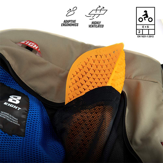 Αδιάβροχο softshell μπουφάν Cirrus από την εταιρεία Eight αστικής όψης με προστατευτικά Lite Pro Ultra-Flex Level 2 με κυψελοειδή δομή για εξαιρετική ευελιξία σε ώμους και αγκώνες.